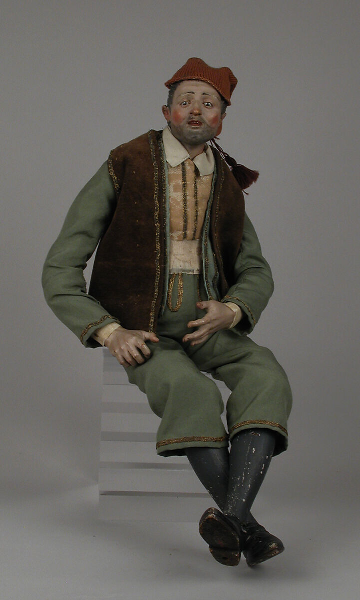 - Medium: Polychromed terracotta head; wooden limbs; body of wire wrapped in tow; silk garments; glass eyes
