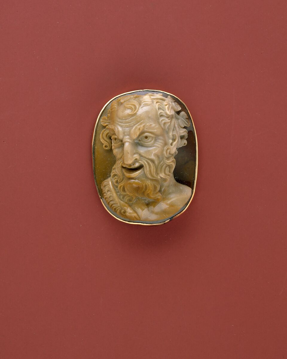 The tradition of representing satyrs on intaglios and cameos is an ancient one, stretching back at least as far as sixth-century Greece. This cameo, with its forced perspective and strong, unidealized image, belongs to a rather late stage in the evolution of the representation of the sylvan deity. It was probably made in Italy, the chief center of cameo production in the late eighteenth and nineteenth century, as it is today.