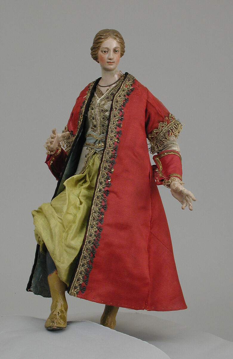 - Medium: Polychromed terracotta head; wooden limbs; body of wire wrapped in tow; silk garments with metallic thread and other materials; glass eyes