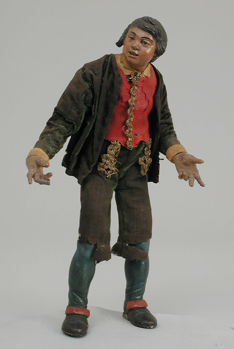 - Medium: Polychromed terracotta head; wooden limbs; body of wire wrapped in tow; various fabrics including velvet