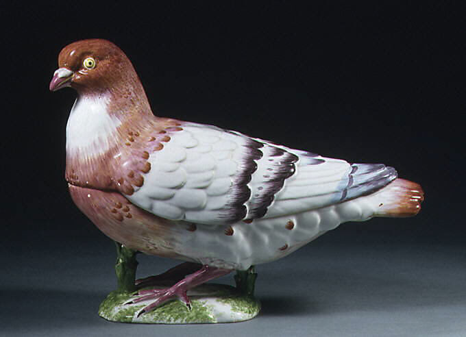 While faience can be created from a wide mixture of clays, it is foremost distinguished by the milky opaque white color achieved by the addition of tin oxide to the glaze. French faience is typically divided into two types. Grand feu (high fire) describes pieces that have been decorated with glaze and metallic oxides before being fired a single time at a high temperature of around 1650°F (900°C). Petit feu (low-fire) faience, developed in the second half of the eighteenth century, refers to a process whereby the clay body is fired before being glazed and decorated with metallic oxides and then fired again at a lower temperature; pieces can also go through a third firing. Grand feu pieces have a more limited color palette that consists of blue, yellow, brown-purple, and green. By contrast, the lower firing temperature of petit feu faience enabled both greater precision in painting techniques and variety in the range of colors.