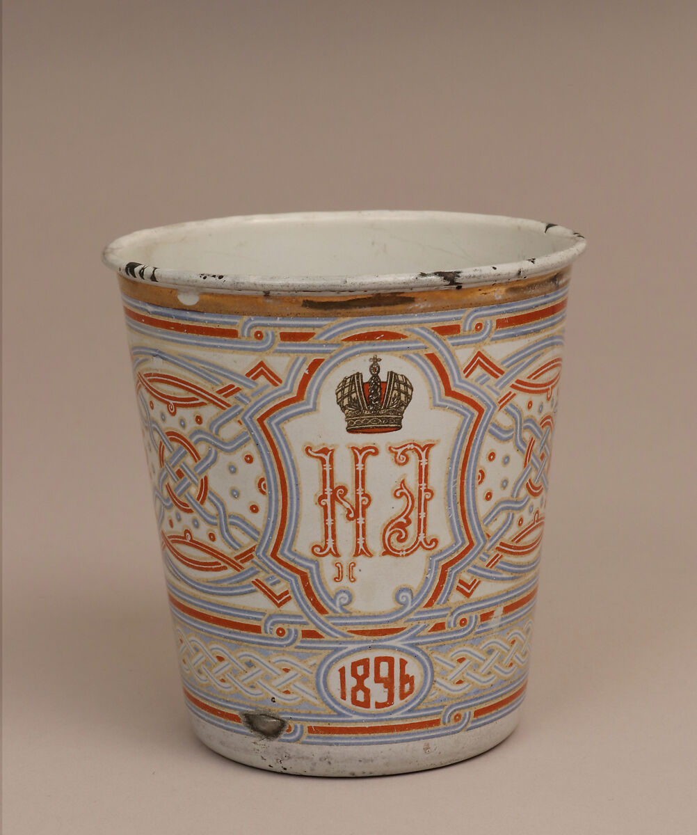 As a historical piece it is indicative, with its companion ladies' scarf (1991.414.2) of "official taste" in Imperial Russia in the last decade of the nineteenth century. Both beaker and scarf were issued to the public in very large numbers at the time of the coronation of Czar Nicholas II.