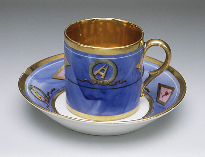 - Dimensions: Height (cups .13–.15, each): 2 1/2 in. (6.4 cm); Diameter (saucers .16–.18, each): 5 1/8 in. (13 cm)