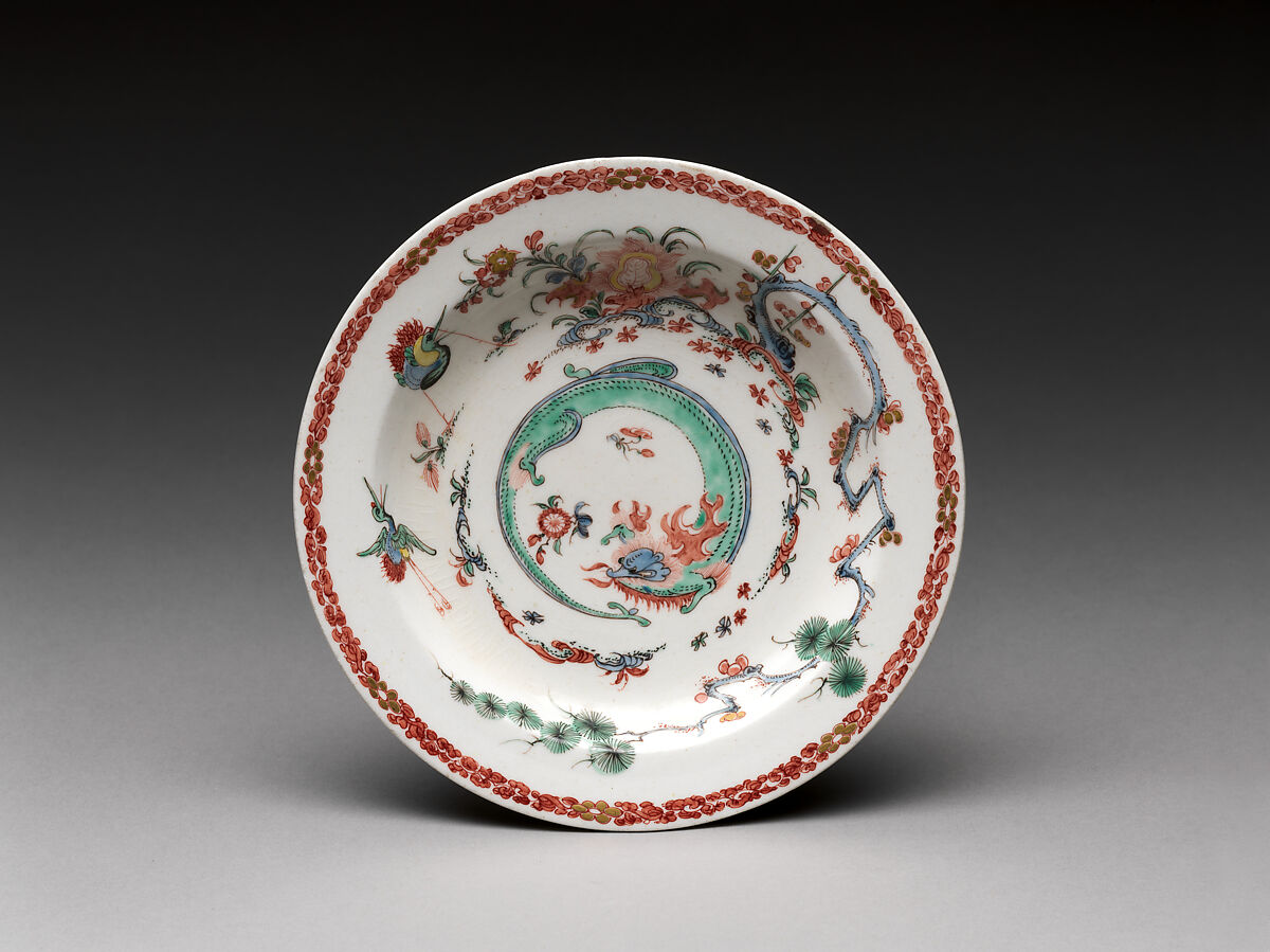 - Medium: Soft-paste porcelain painted with colored enamels over transparent glaze
