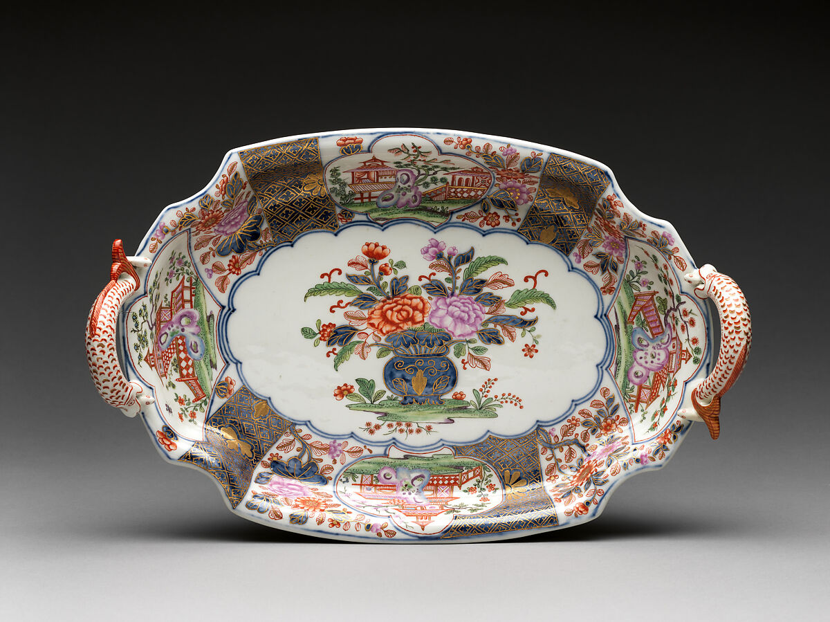 - Medium: Hard-paste porcelain painted with colored enamels over transparent glaze