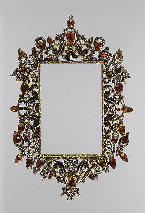 - Medium: Parcel-gilded and enameled silver, pastes (artificial diamonds) backed by pink metal foil
