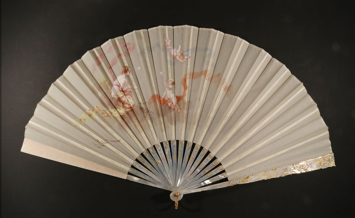 - Medium: Hand-painted silk; mother-of-pearl, metal gilt