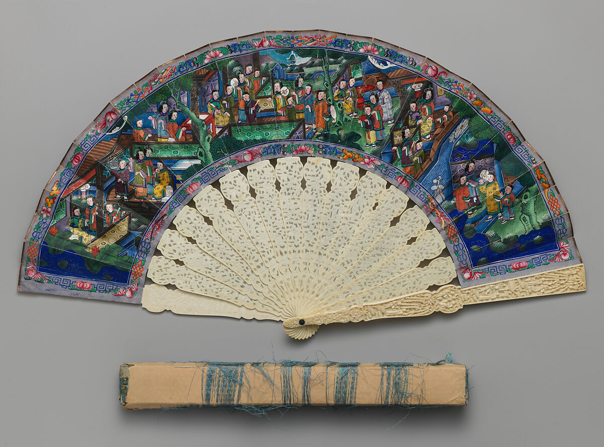- Title: Folding Fan with Scene of Figures in a Courtyard Garden