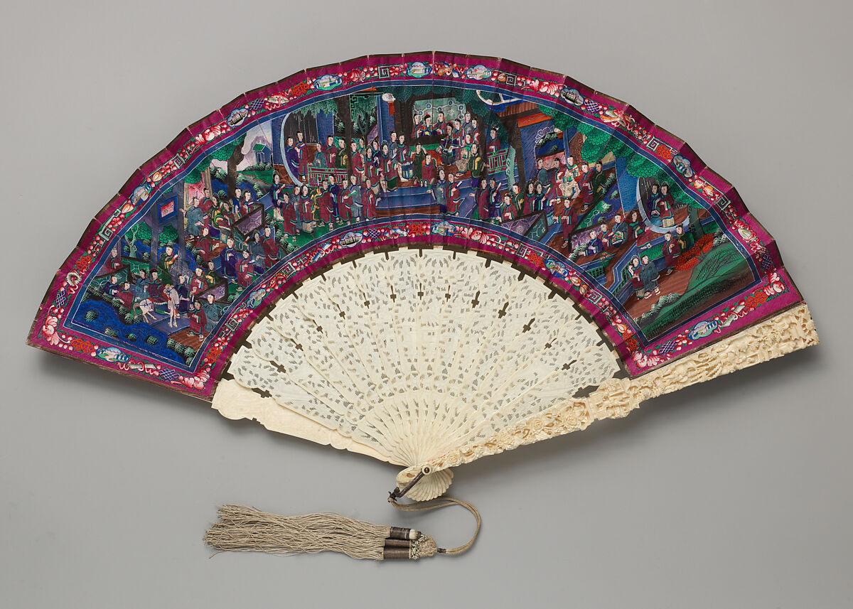 - Title: Folding Fan with Scene of Figures in a Courtyard Garden
