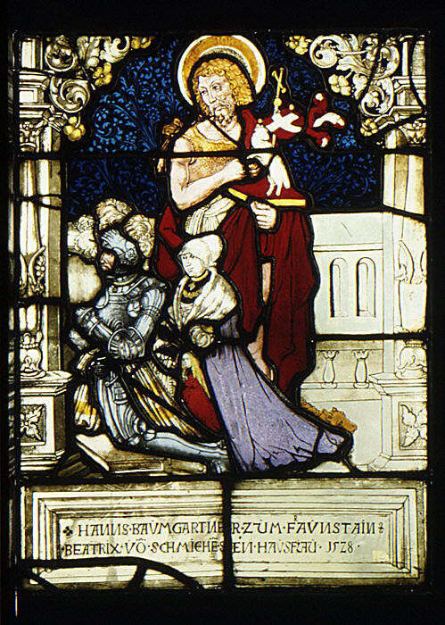 - Title: St. John the Baptist standing behind donor, Hanns Baumgartner, and his family (one of a pair)