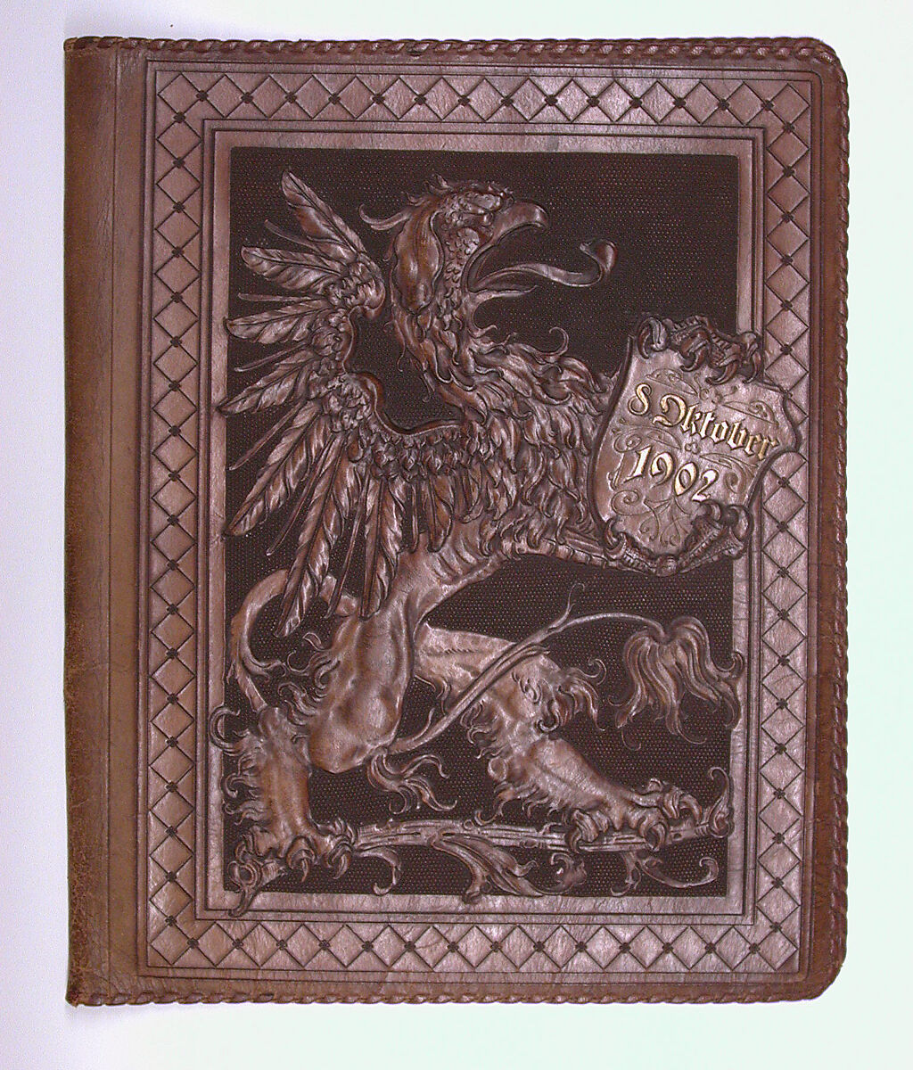 - Medium: Leather, partially painted and gilded