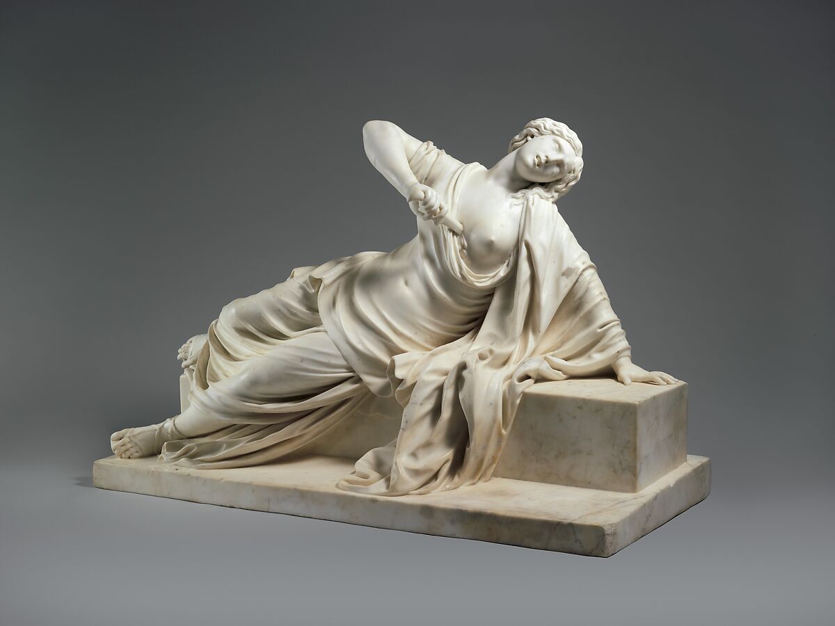 Lucretia's suicide out of shame for her rape by Sextus Tarquinius—a self-sacrifice that led to the rebellion in Rome against the Tarquins— was frequendy depicted in prints and paintings, though less often in sculpture, from the sixteenth through the eighteenth century. In France during this period femmes fortes, powerful women from ancient history or myth, such as Lucretia, Cleopatra, and Dido, as well as from the Bible, such as Esther, Jael, and Judith, were popular paragons of virtue. This sculpture shares many characteristics of the morceaux de réception, works required of candidates for admission to the Académie Royale de la Peinture et de la Sculpture in Paris. About 1700 these showcases of the sculptor's talents tended to be highly dramatic, under-lifesize marble sculptures of classical subjects. Lucretia appears to be the figure that Bertrand, one of the talented generation of sculptors who participated in royal projects at Versailles, displayed at the Salon of 1704. Exceptionally, Bertrand submitted a bronze sculpture as his academy reception piece in 1701; possibly, he carved Lucretia in the manner of the morceaux de réception to demonstrate his talents in marble.