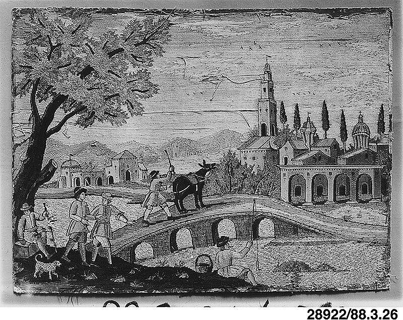 - Title: Riverview with figures and bridge