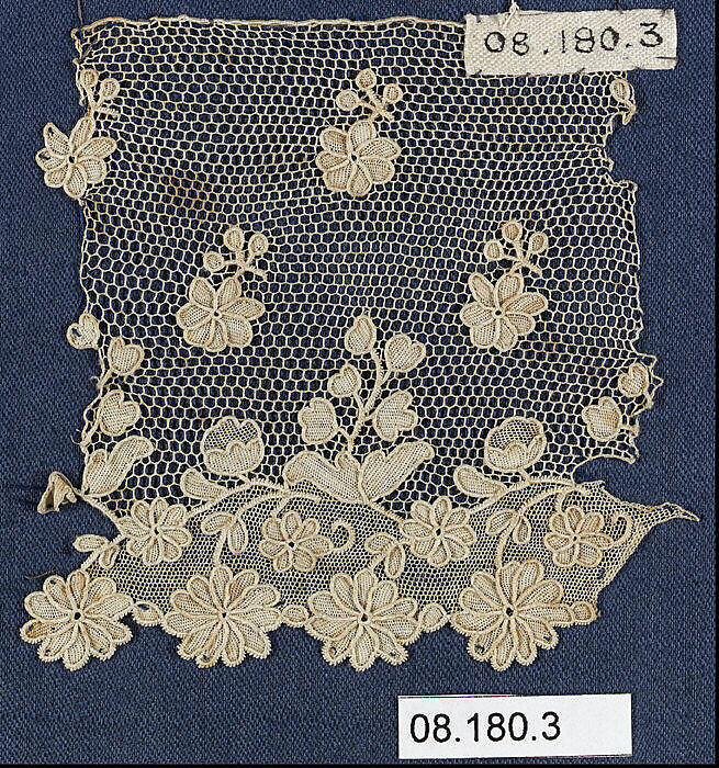 - Medium: Needle lace, imitation point d’Alençon