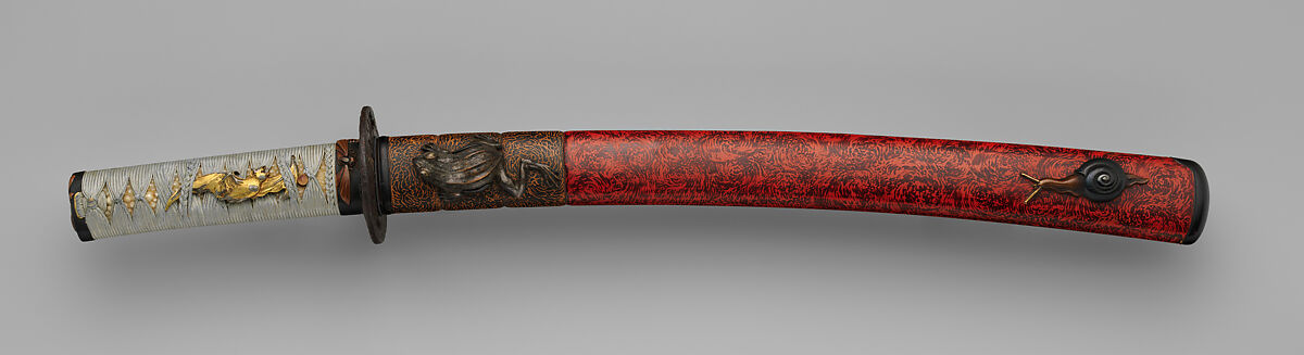 - Medium: Steel, wood, lacquer, rayskin (samé), thread, copper-gold alloy (shakudō), silver, copper, iron
