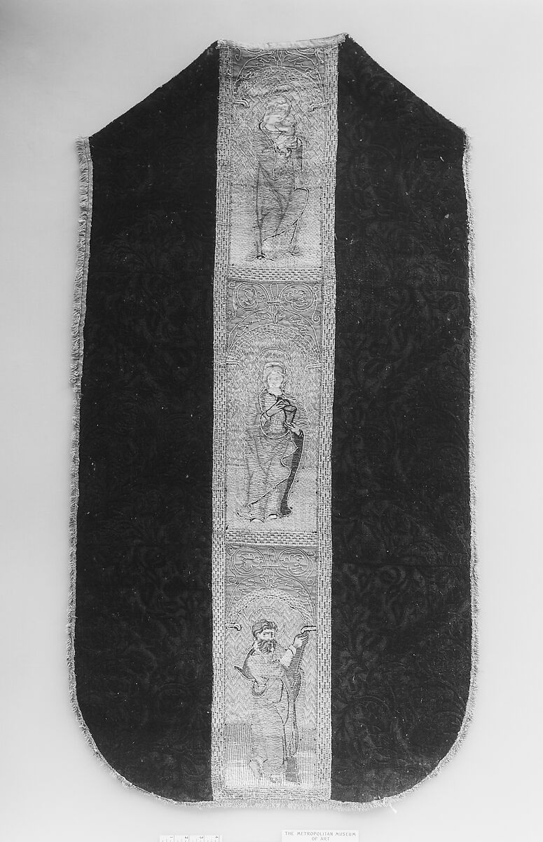 This chasuble back was originally attached to a chasuble front also in The Met's collection (14.134.6b) on which are represented John the Baptist and Saint Agatha.