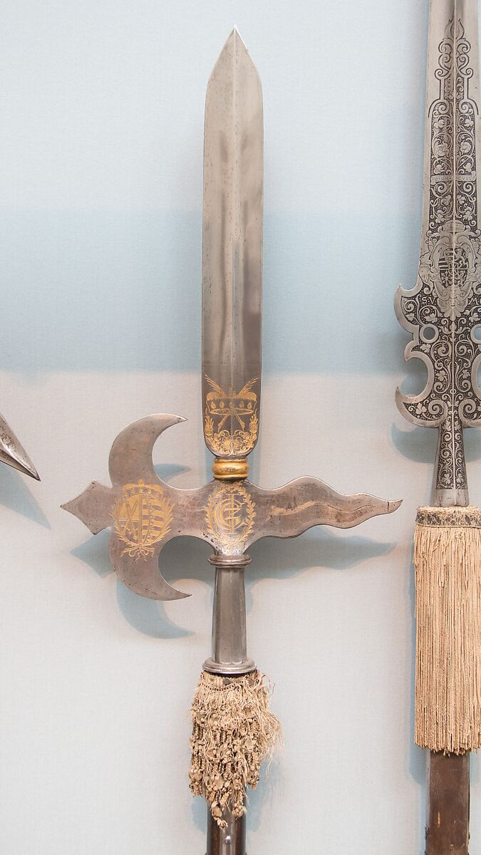 This staff weapon was carried by the bodyguards of the Prince-Electors of Saxony.