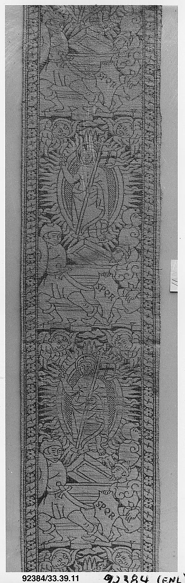 - Title: Orphrey woven with figurative repeat design of the Resurrected Christ