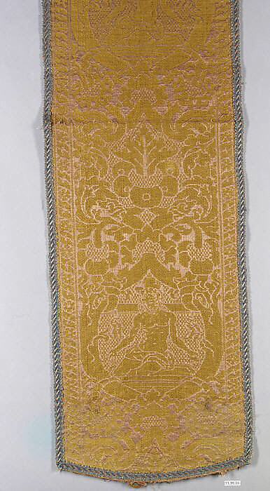 - Title: Orphrey woven with figurative repeat design of Christ as Man of Sorrows