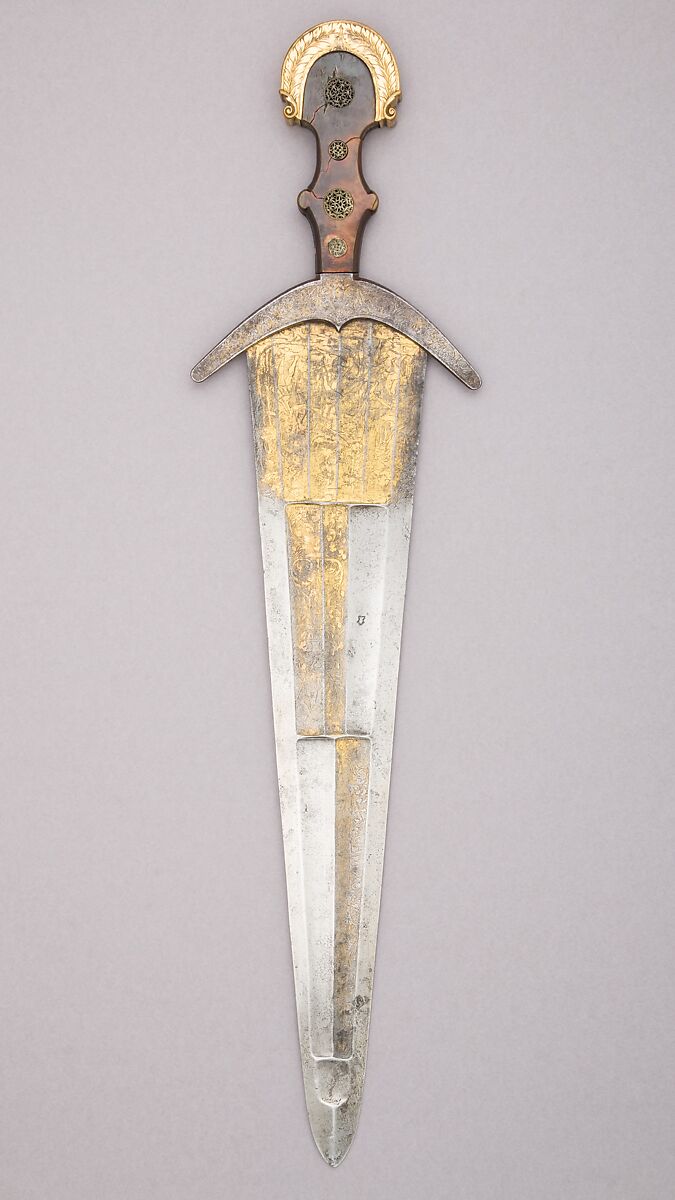 The cinquedea derives its name from the distinctively broad blade, about five fingers (cinque diti) wide. The scenes on both sides of this blade represent episodes from the ancient Roman myth of Diana and Actaeon.