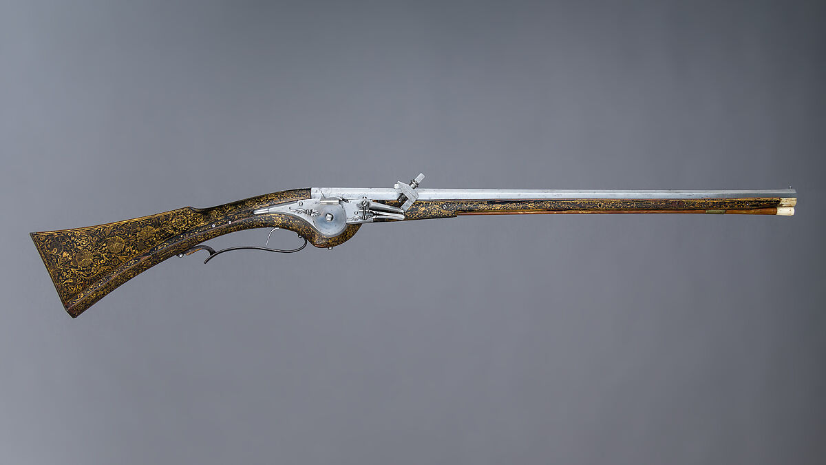 Painted decoration on gunstocks was not a common form of firearms decoration. Very few examples survive today, and this is possibly the finest. The size of this gun suggests it may have been made for Louis XIII when he was a young boy. It is from the French Royal Arms Collection, inventory number 52.