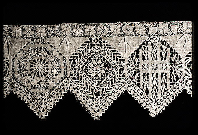 - Medium: Embroidered net, punto à tela, punto à rammendo,
