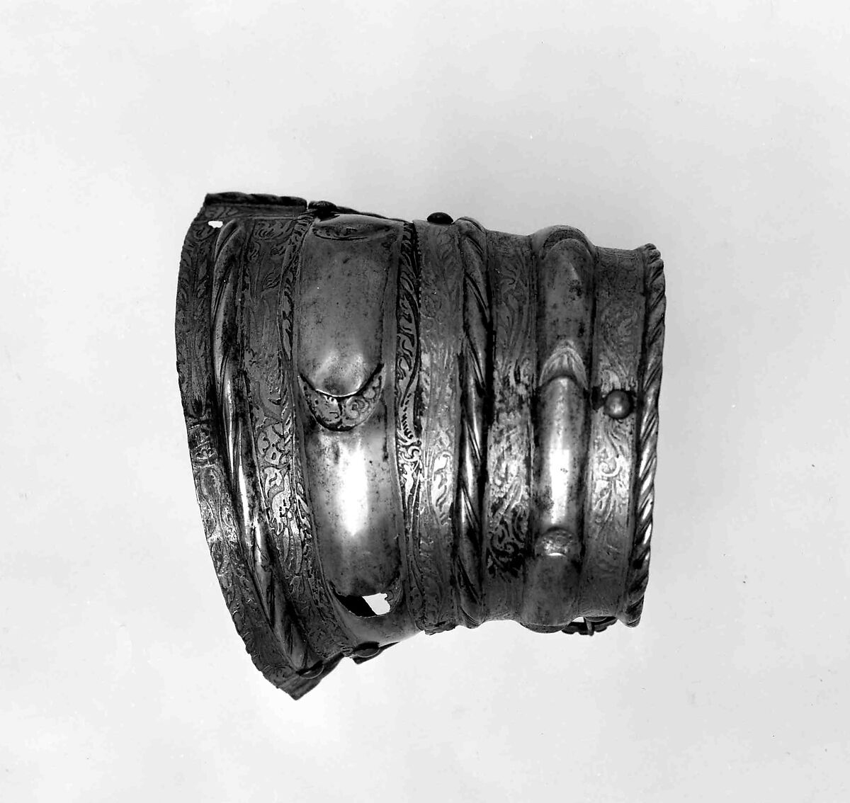 This left shoulder, along with a matching left thigh also in the Metropolitan Museum's collection (acc. no. 29.158.304), is from an armor ordered in 1532 by Archduke Ferdinand (later Emperor Ferdinand I) for his five-year-old nephew, the future Philip II of Spain (reigned 1556–98).