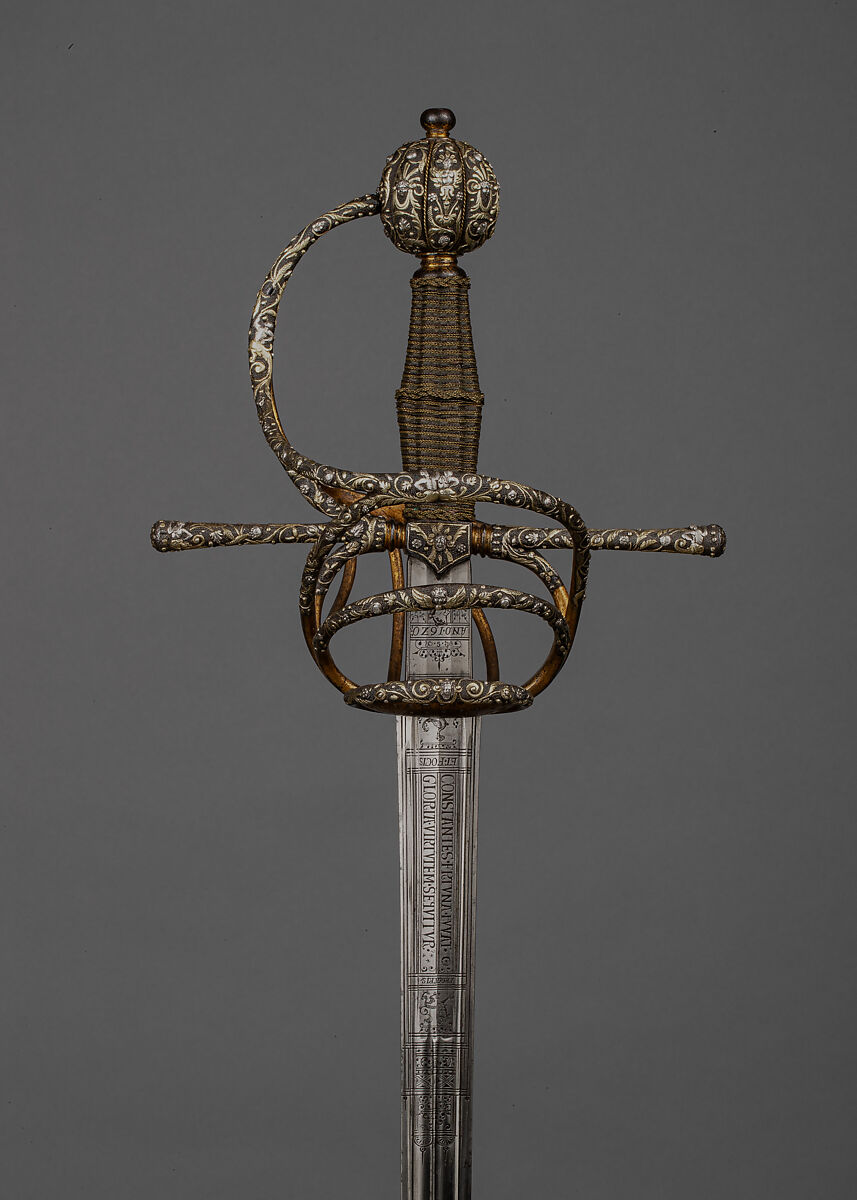 Unless otherwise noted, the materials, attributions, and dating given here refer to the hilts. Rapier blades, invariably of steel, bear a variety of maker’s marks denoting their origin in the two principal centers of blademaking, Toledo in Spain and Solingen in Germany.