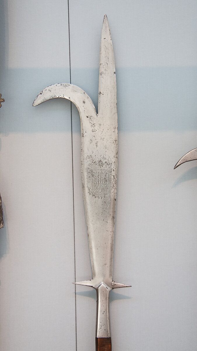A similar staff weapon, with the arms of a member of the Gonzaga family, is in the Metropolitan Museum of Art. (accession number 04.3.84).