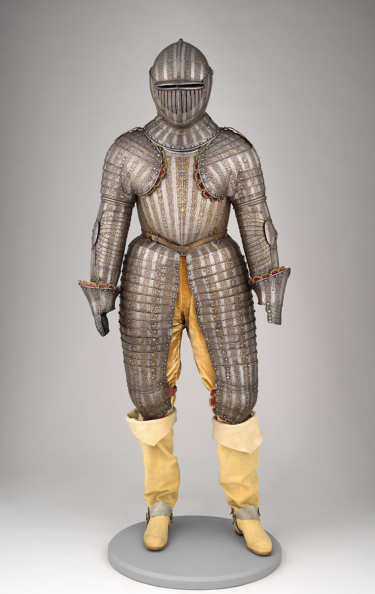 This armor is a deluxe version of a typical cuirassier’s armor, worn by heavy cavalry armed with sword and pistols. Its rich ornament and light weight, however, indicate that it was designed primarily for ceremonial wear and as a symbol of martial status.