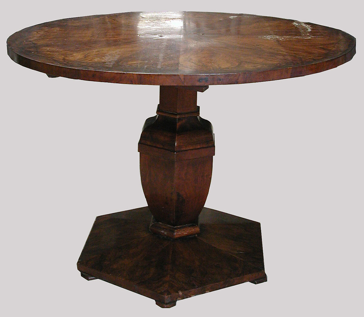 - Medium: Solid pine wood (top, plinth and inner column), solid walnut (outer column), walnut and burr walnut veneer; iron and steel.