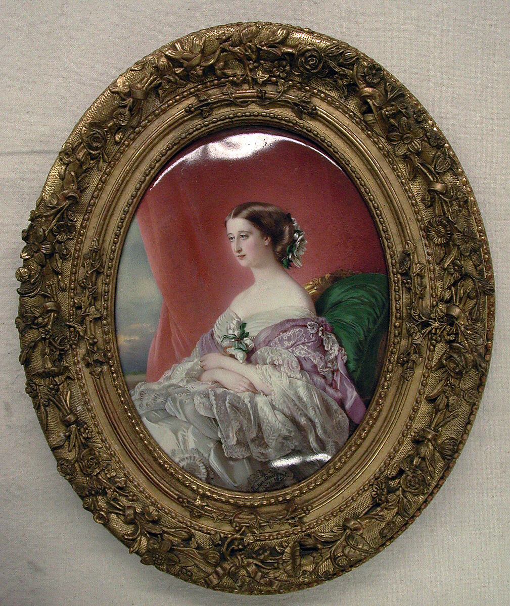 A close copy of a painting by Franz Xaver Winterhalter (1806–1873), the portrait depicts Eugénie de Montijo de Guzmán (1826–1920), wife of Emperor Napoleon III and mother of the prince imperial.