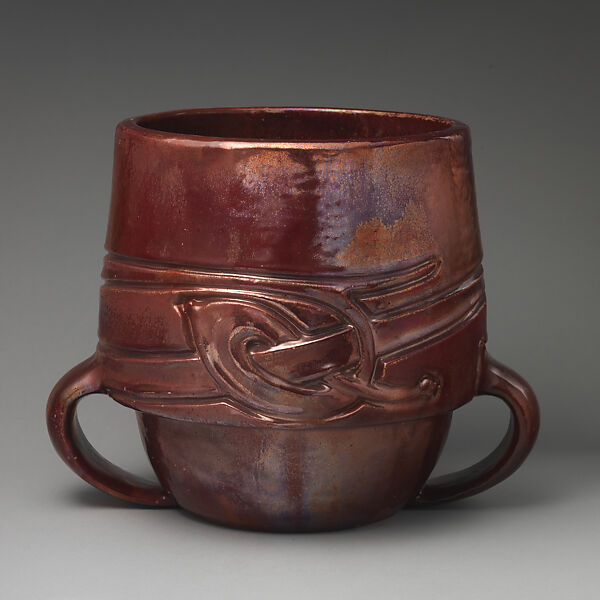 Archibald Knox was one of the most talented and original designers of the Arts and Crafts Movement. The jardinière is a particularly fine example of Knox's ceramic garden pottery. It is distinguished by both its highly original form decorated with the Celtic knot pattern that is so closely identified with Knox's work and by its deep copper-red luster glaze, one of the most striking found on any Knox ceramic object. It is rare to have a Knox-designed ceramic piece, as his work for this medium is much less commonly found than his metalwork designs. The museum collection includes a superb Knox silver claret jug (1992.346) of about 1900.