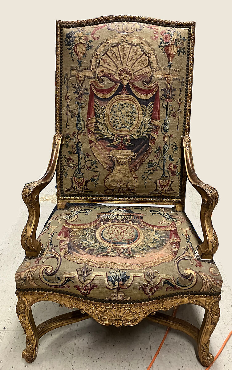 - Medium: Carved and gilded beechwood, with Beauvais tapestry covers of silk and wool