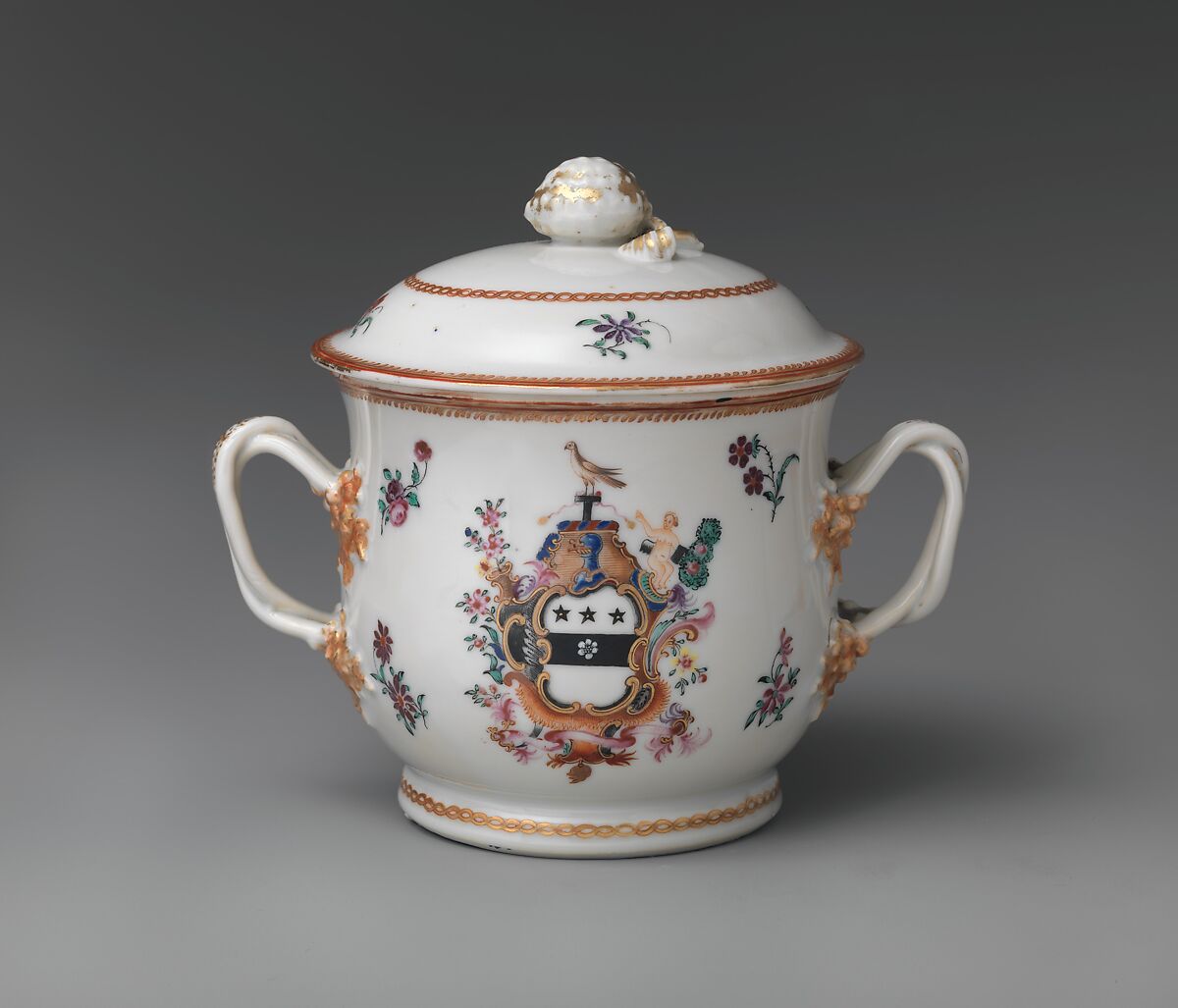 This object belongs to a large dinner service (10.149.1–.248) bearing the Townley family coat-of-arms. The service, probably ordered by Justice Samuel Chase (1741–1811) of Annapolis, Maryland, displays the enamel-painted arms of Margaret Townley, Chase's aunt.