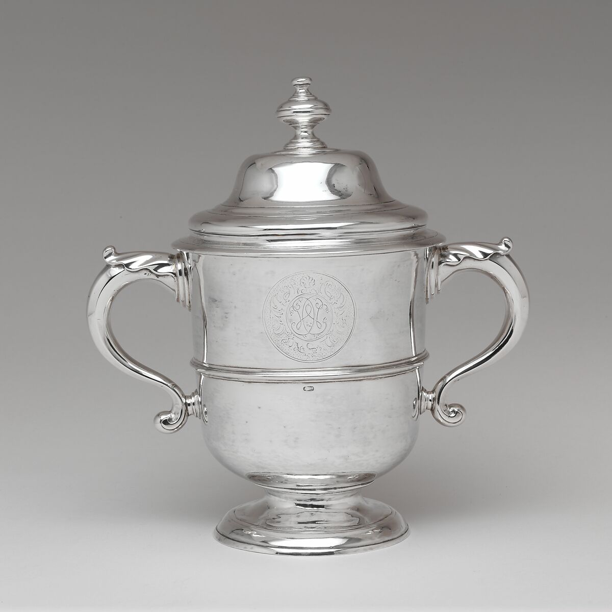 Two-handled covered cups, a favored form of presentation silver in England, were rare in colonial America.