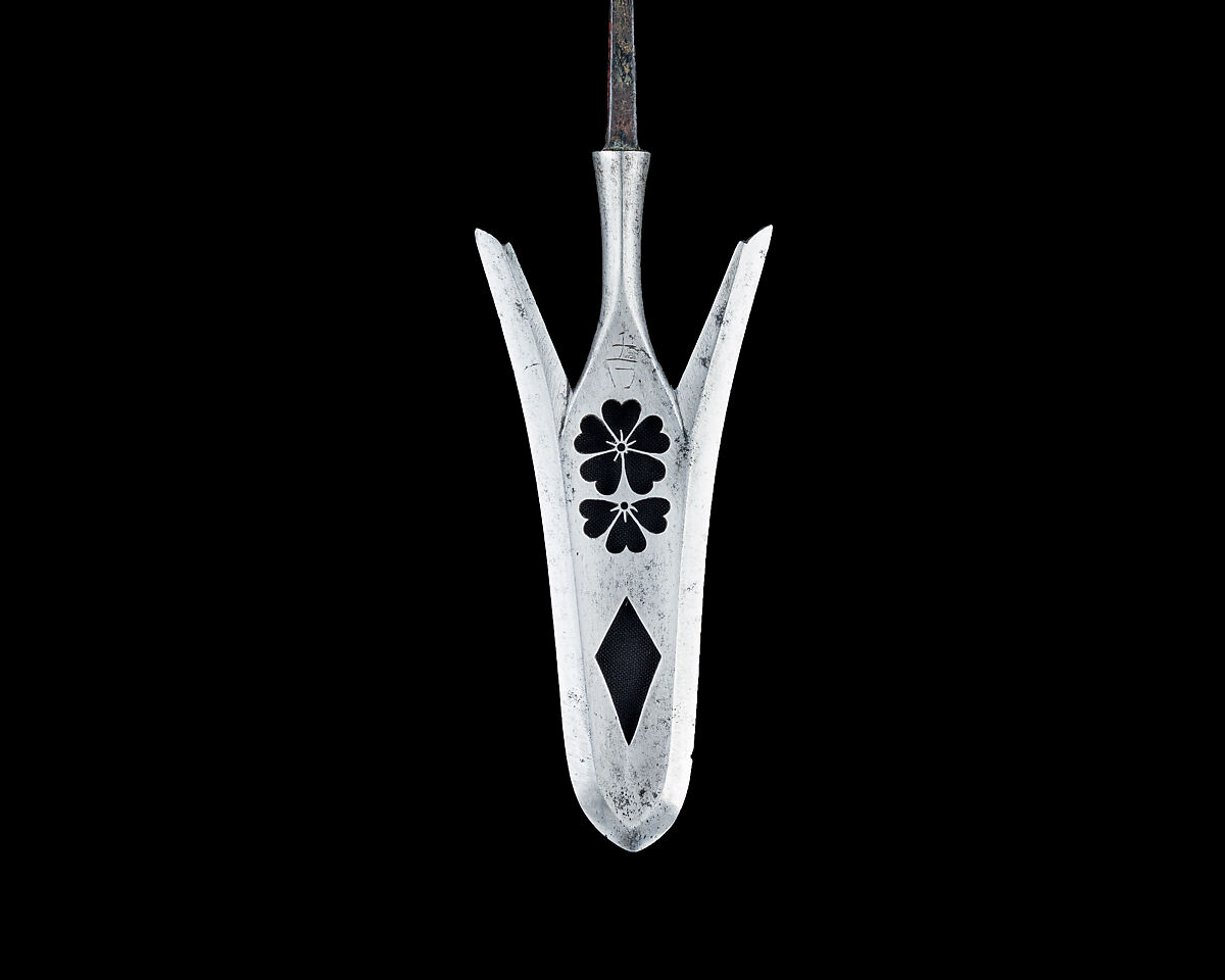Although today Japanese warriors are renowned most for their swordsmanship, archery, especially from horseback, has been an essential part of samurai warfare and culture for centuries. Arrows were fitted with heads of varying shape according to their intended use in war, the hunt, or target practice. This arrowhead and others like it also in the Metropolitan Museum's collection (acc. nos. 32.75.489, .494, .503, .506, .519, .562, .591, .614, .657, .658, .659) were made for use on the battlefield, with different designs intended for specialized purposes such as the piercing of armor or to cause maximum damage to horses and unarmored personnel. On the other hand, highly elaborate examples (acc. nos. 32.75.318, .321, .327, .330, .334, .337, .339, .340, .398, .399, .403, .406, .409, 36.25.2616) were made as gifts or for ceremonial purposes.