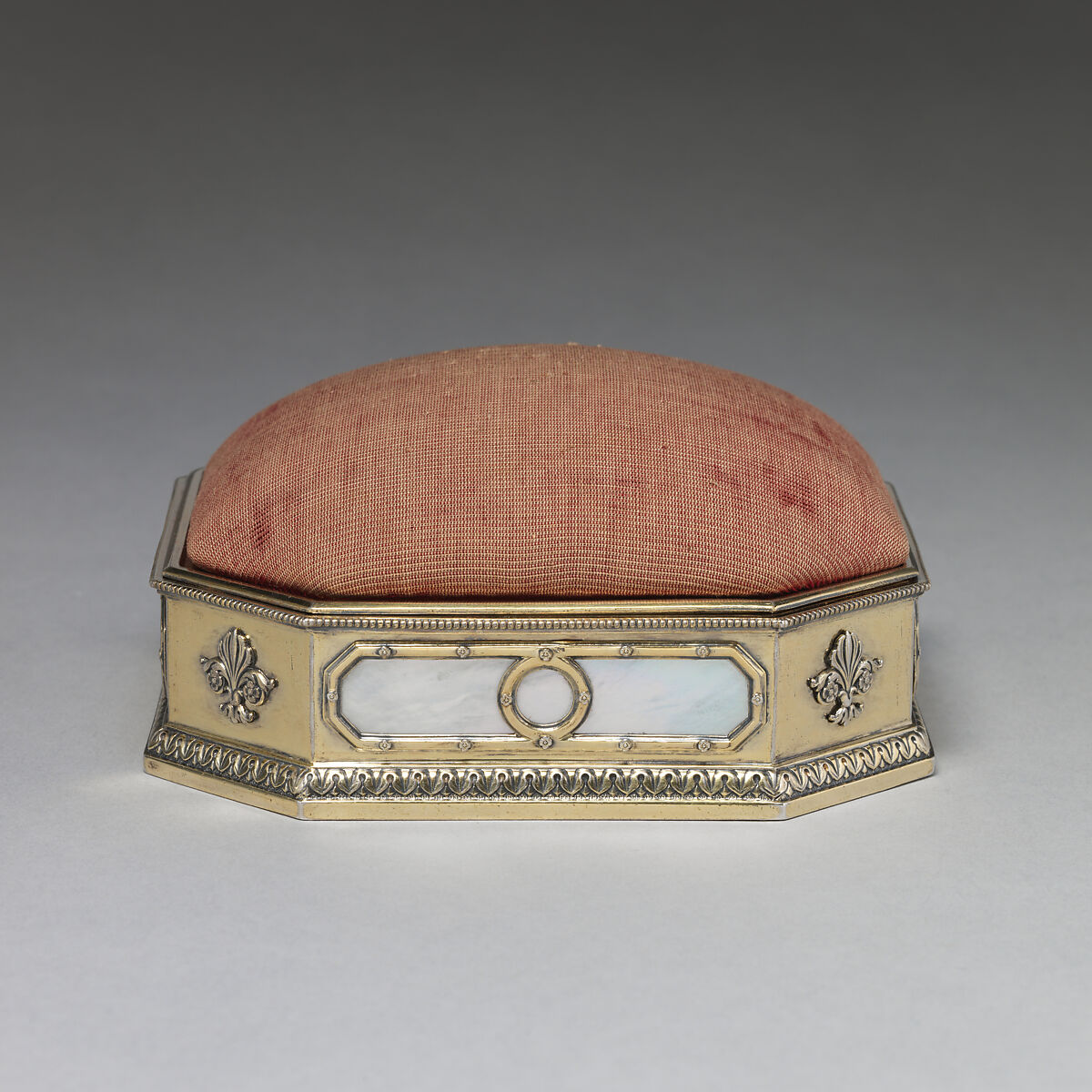 - Medium: Silver gilt, mother-of-pearl, red velvet