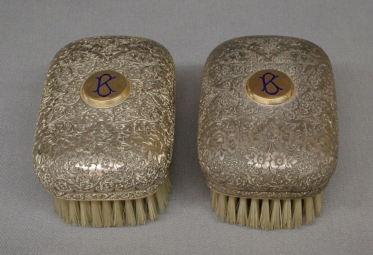 The building of railroads during the first half of the nineteenth century led to a tremendous increase in travel, which stimulated the demand for the sumptuous dressing cases retailed by Frederick Jenner and Fabian James Knewstub and other London firms. This luxury case (61.78.1–.50), with its pivoting compartments, secret storage areas, and myriad fittings "which quite exhaust the requisites for the road or the boudoir," certainly made travel as comfortable as it was cumbersome.