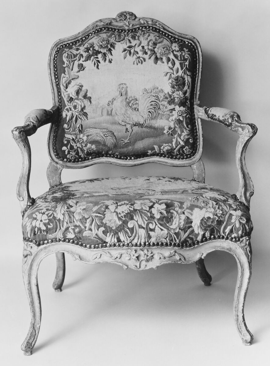 - Medium: Carved and painted walnut; Aubusson tapestry upholstery