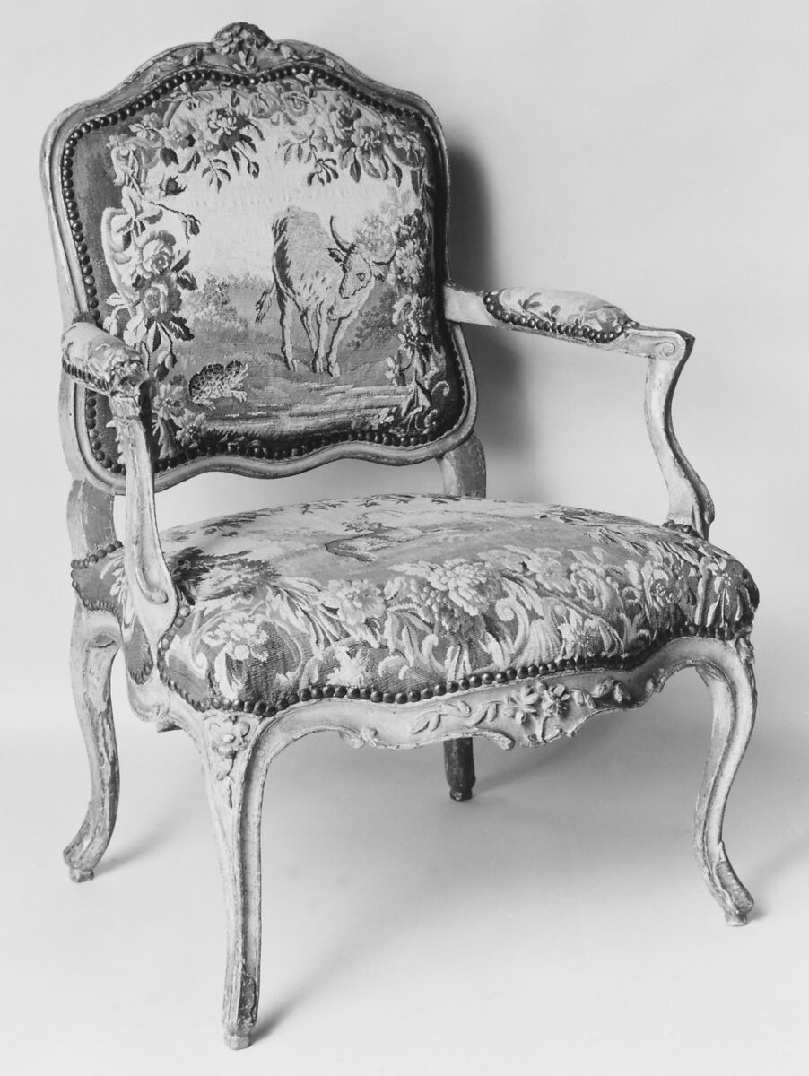 - Medium: Carved and painted walnut; Aubusson tapestry upholstery