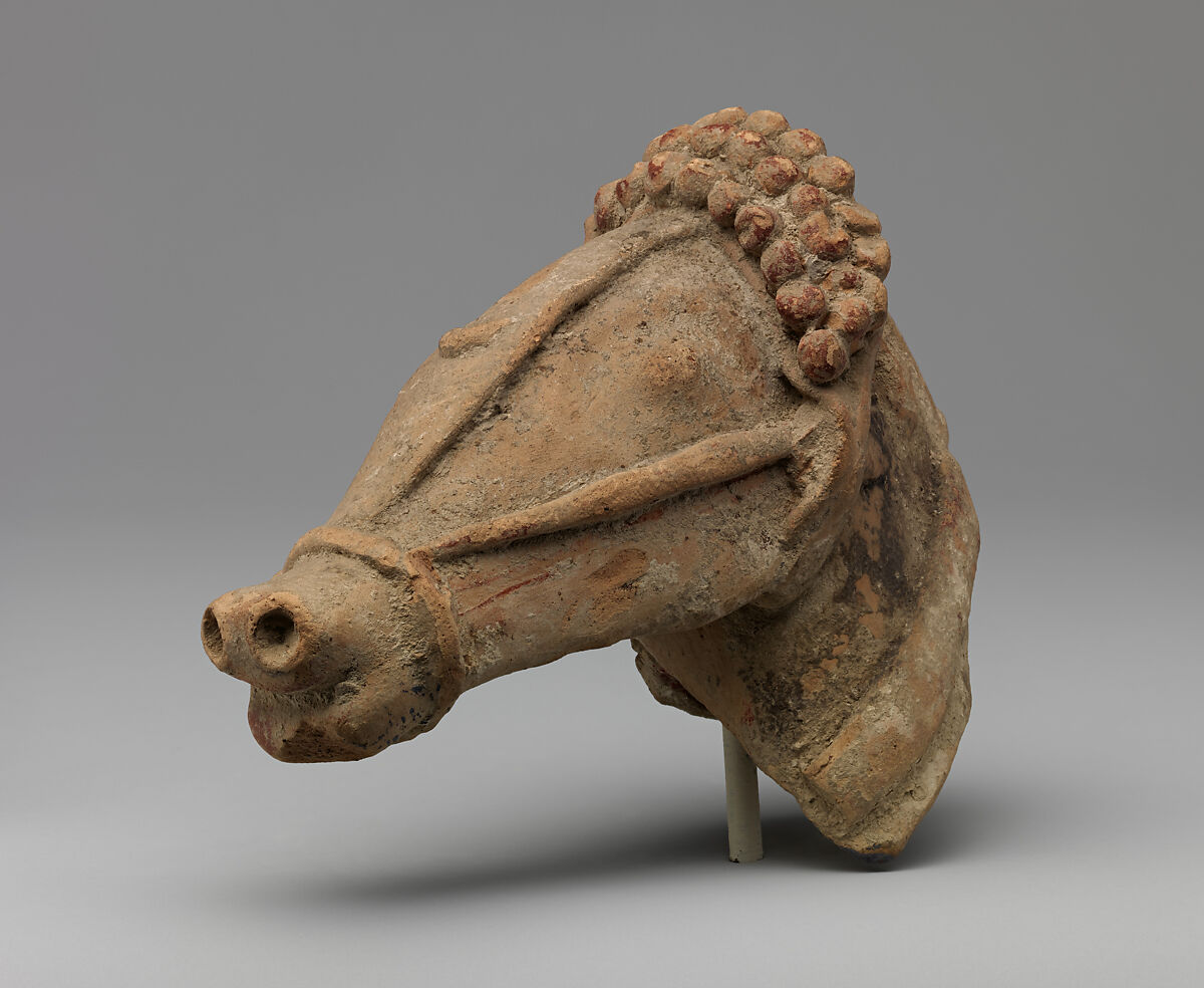 The hollow head is probably from a fairly large quadriga group, judging from the harness.