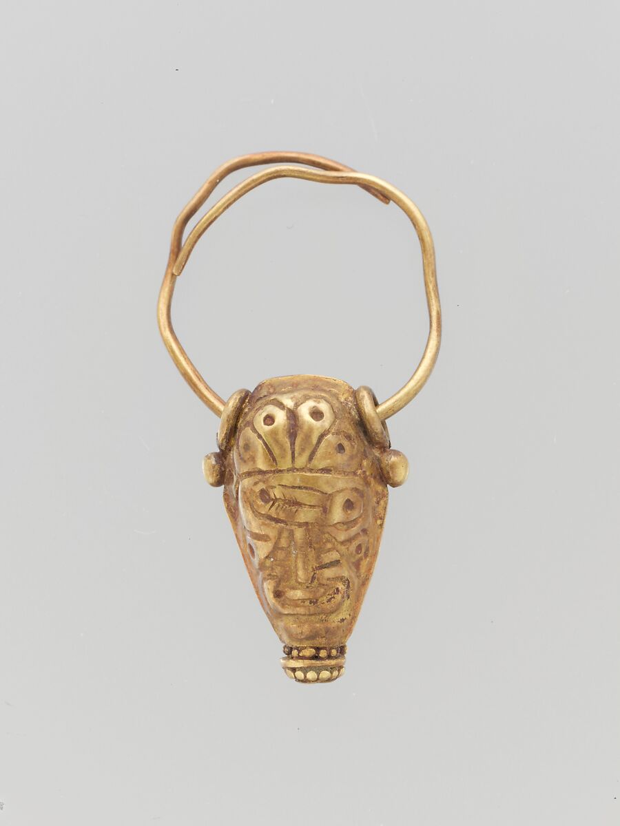 - Title: Gold earring with head of a bull