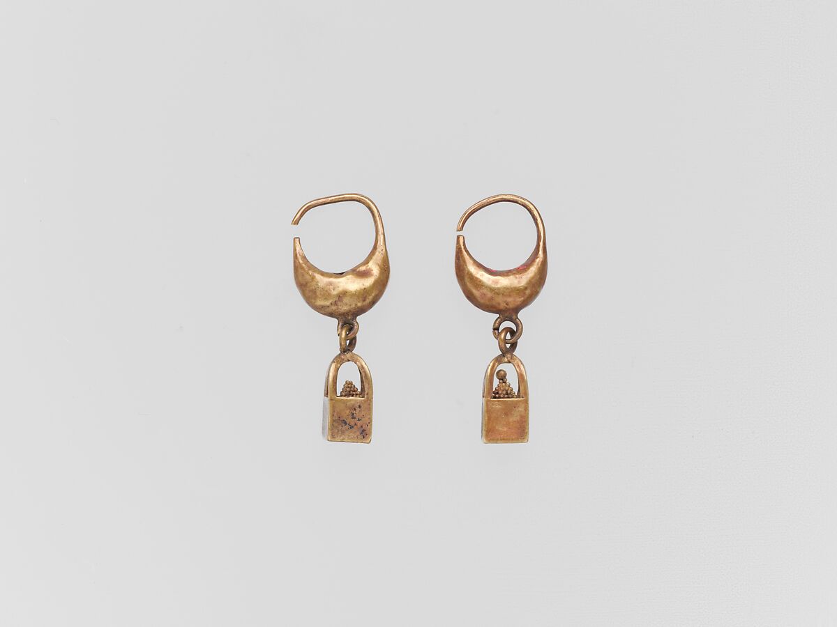 This type of earring originated in the Levant and was widely distributed. It is unclear whether these examples were made in Cyprus or imported.