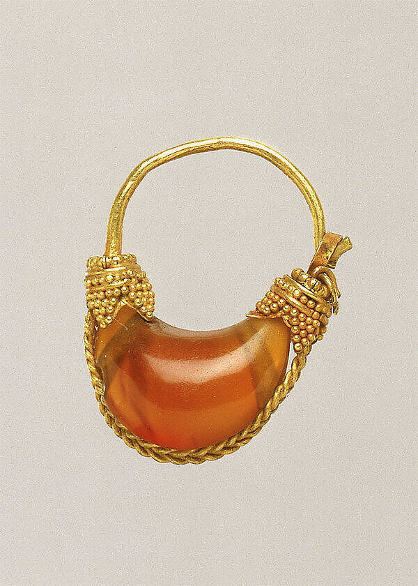 - Title: Gold and carnelian boat-shaped earring