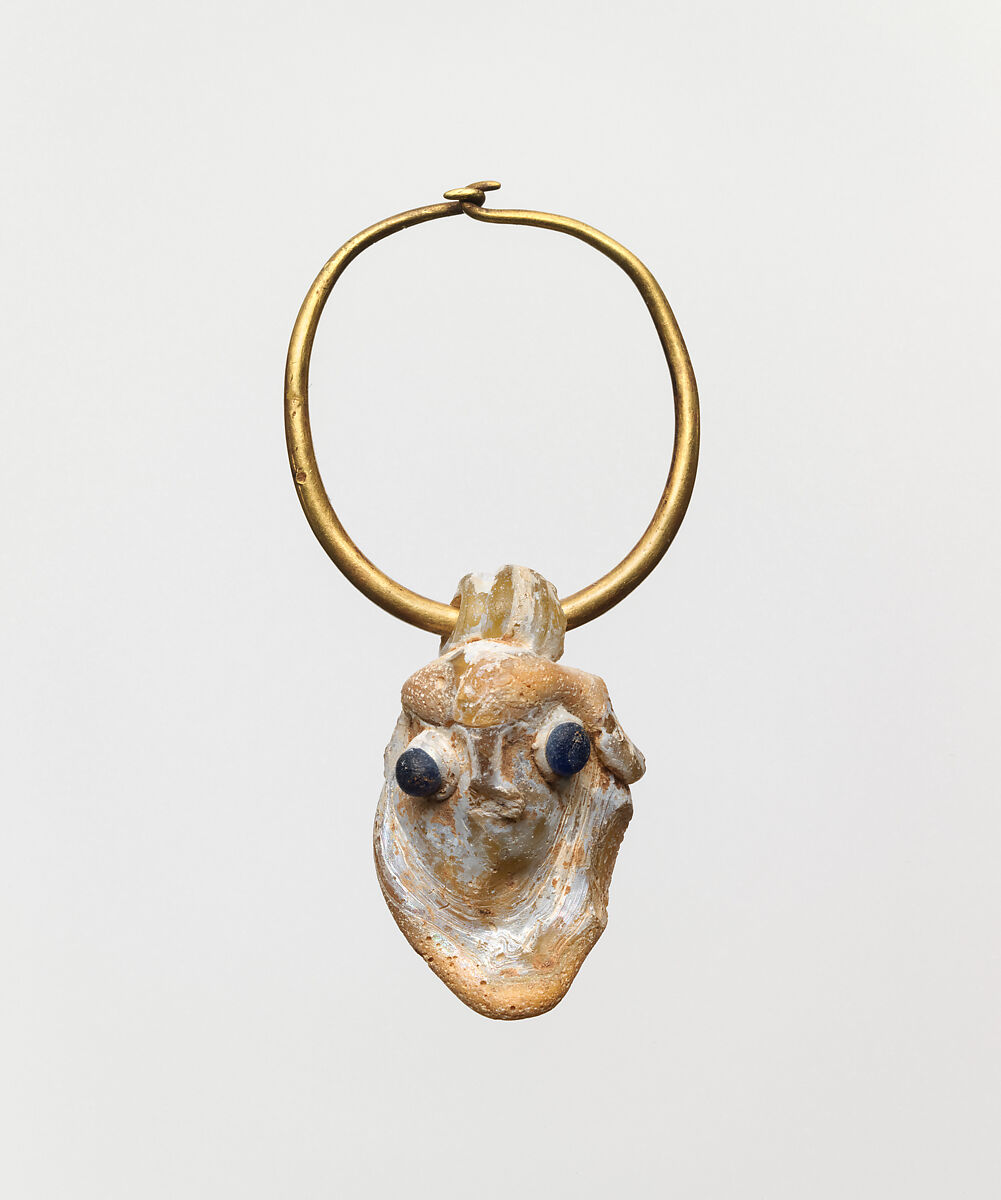 - Title: Gold earring with a glass pendant in the form of a demonic mask