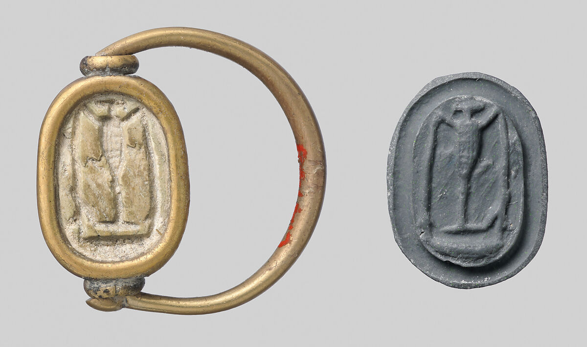 - Title: Gold ring with glass scarab