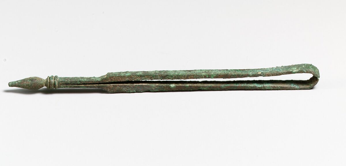 The instrument has long arms, unlike those of the standard type of Roman depilation tweezers, indicating that it may have been used by a doctor for minor surgical operations. Similar objects also have been found among ancient sets of medical instruments.