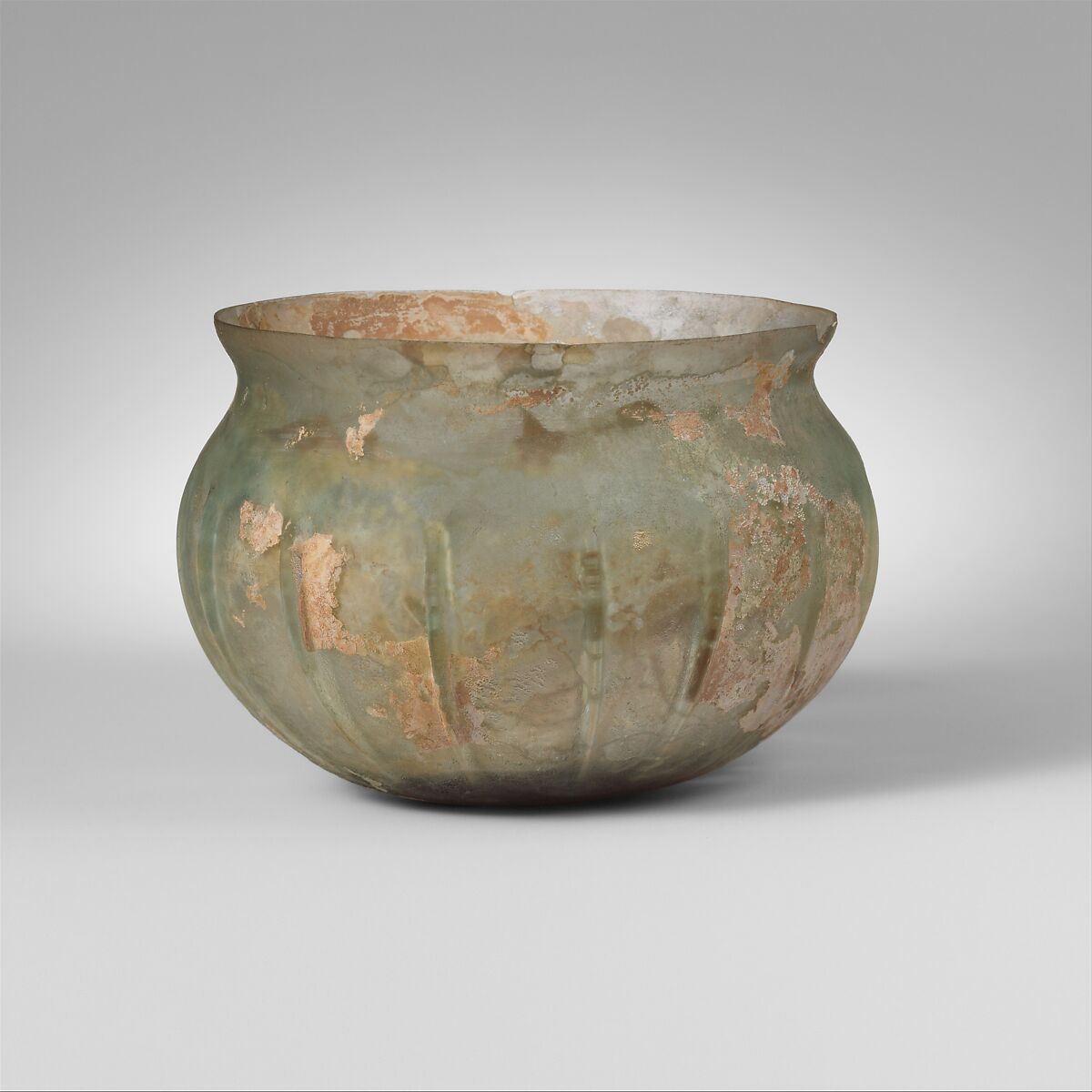 Side tooled into sixteen irregular, vertical ribs.