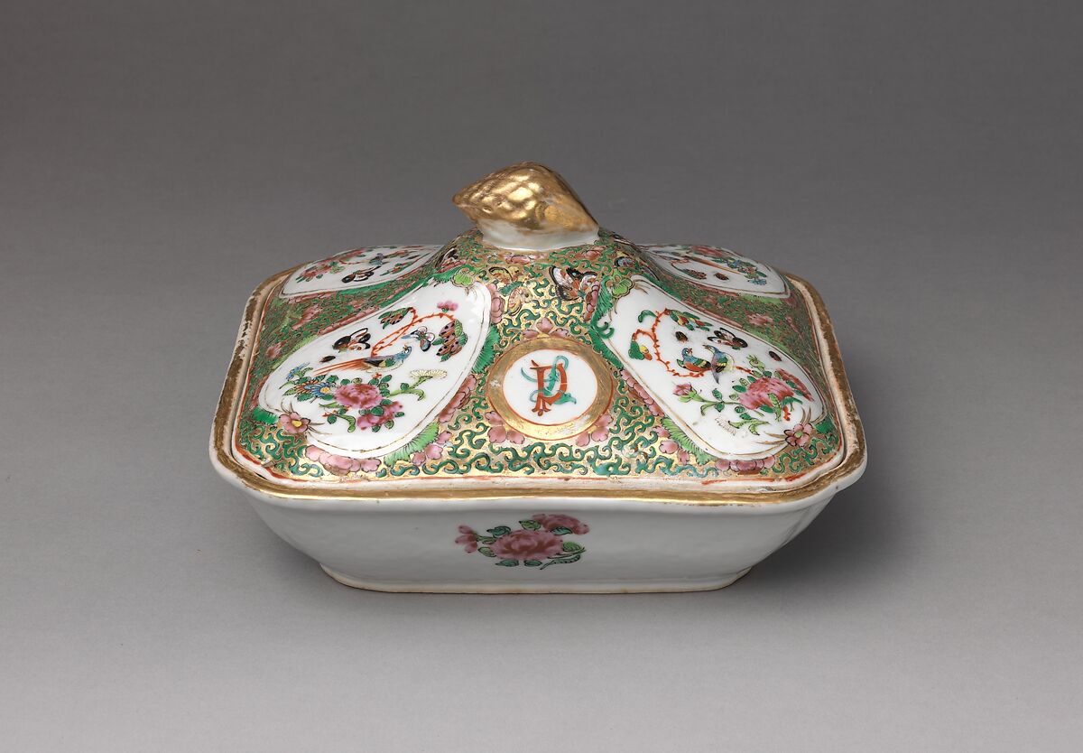 A Providence, Rhode Island merchant, Daniel Paine, ordered this dinner service for his wife, Louisa Paine, in the early nineteenth century. Her initials decorate the cups, saucers, dishes, plates, platters and tureens that compose the service.